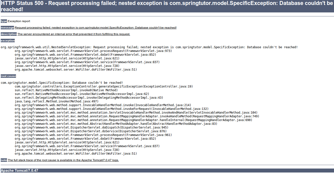 1 2 3 4 5 6 7 8 9 10 11 12 13 14 15 16 | class Controller { public Response serwis() throws Exception { return Response.of(new Service().metodaSerwisowa()); } } class Service { public String metodaSerwisowa() throws Exception { return prywatnaMetodaSerwisowa(); } private String prywatnaMetodaSerwisowa() throws Exception { // logika wyrzucająca Exception return "Nie istotne"; } } |